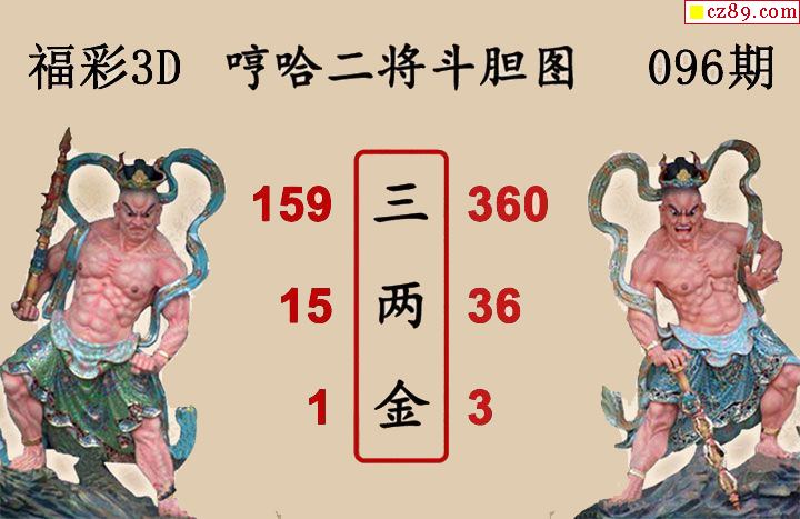 福彩3D2026096期 白鱼舟3D图谜哼哈二将斗胆图
